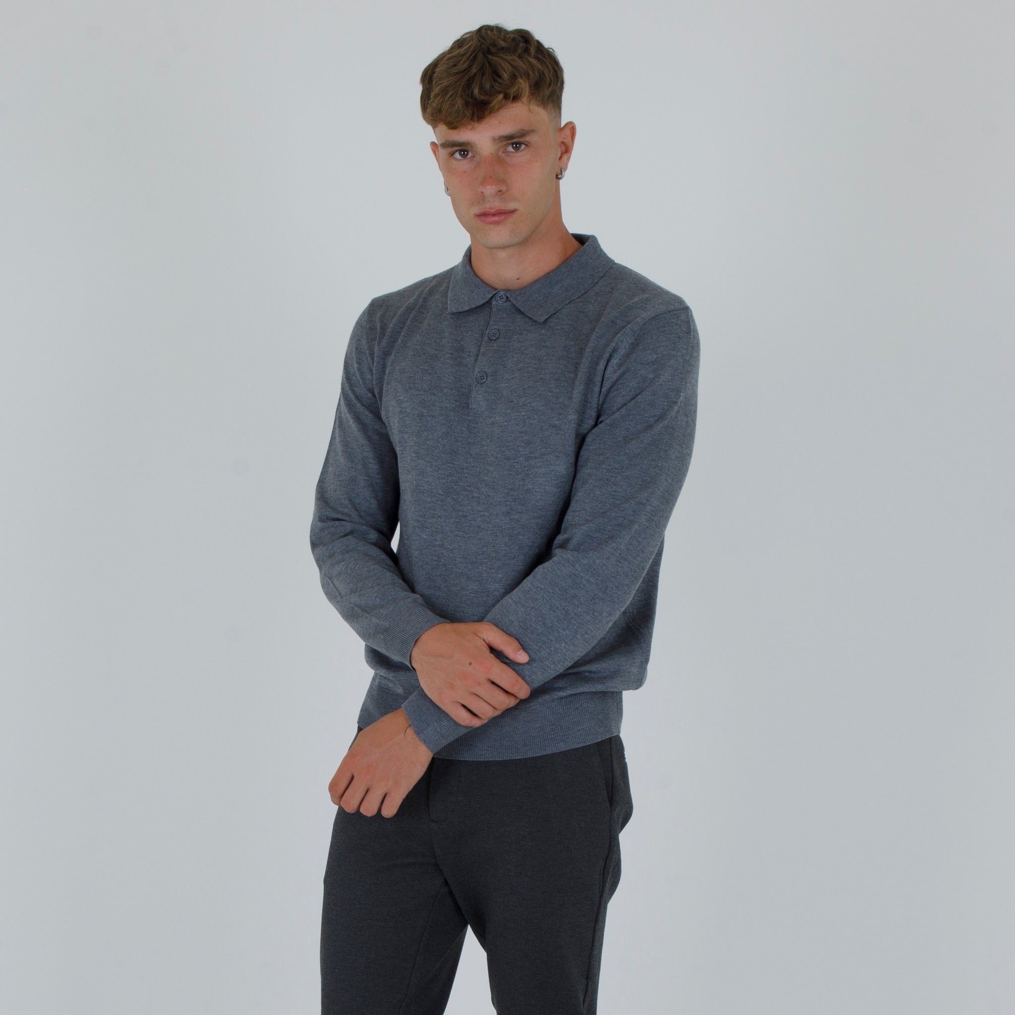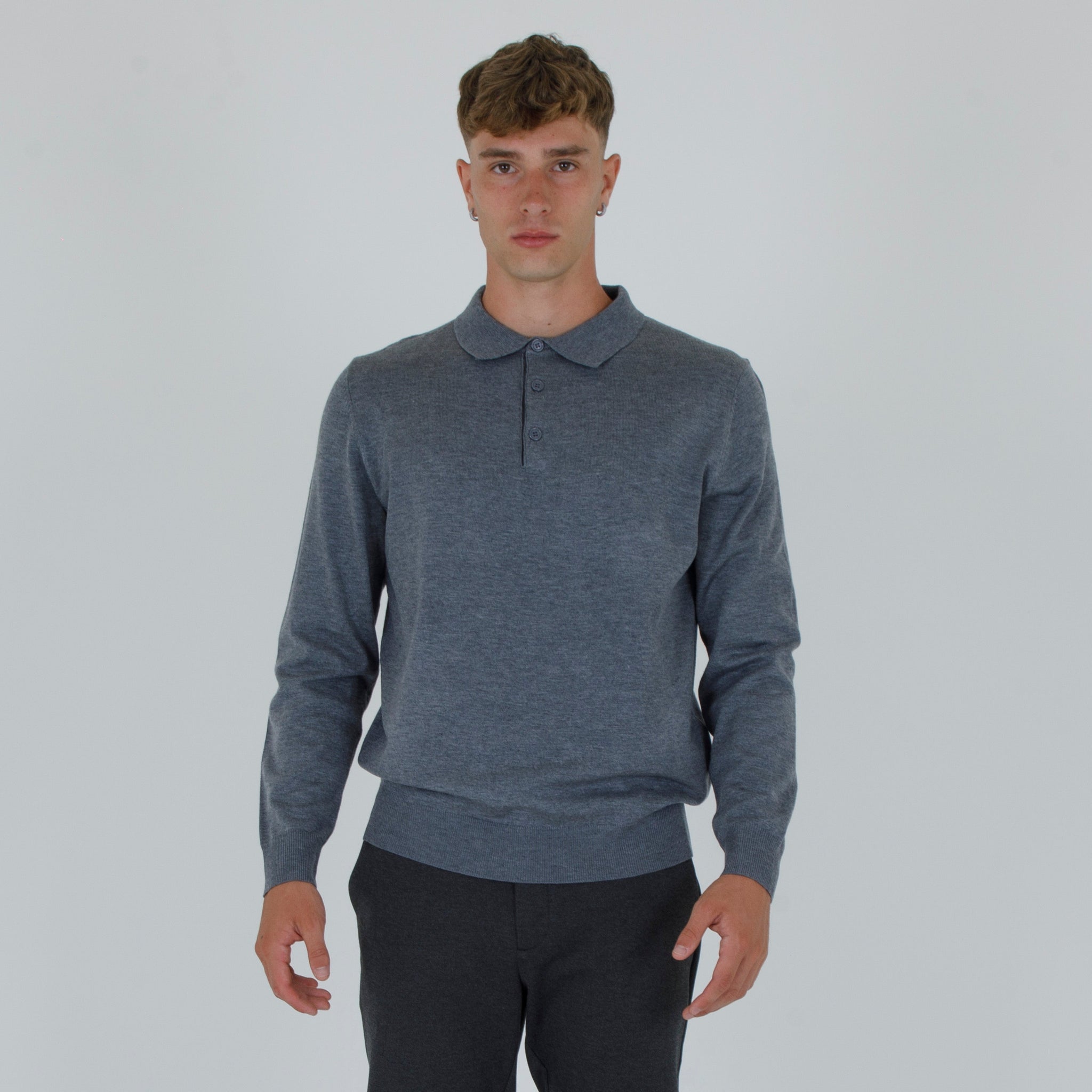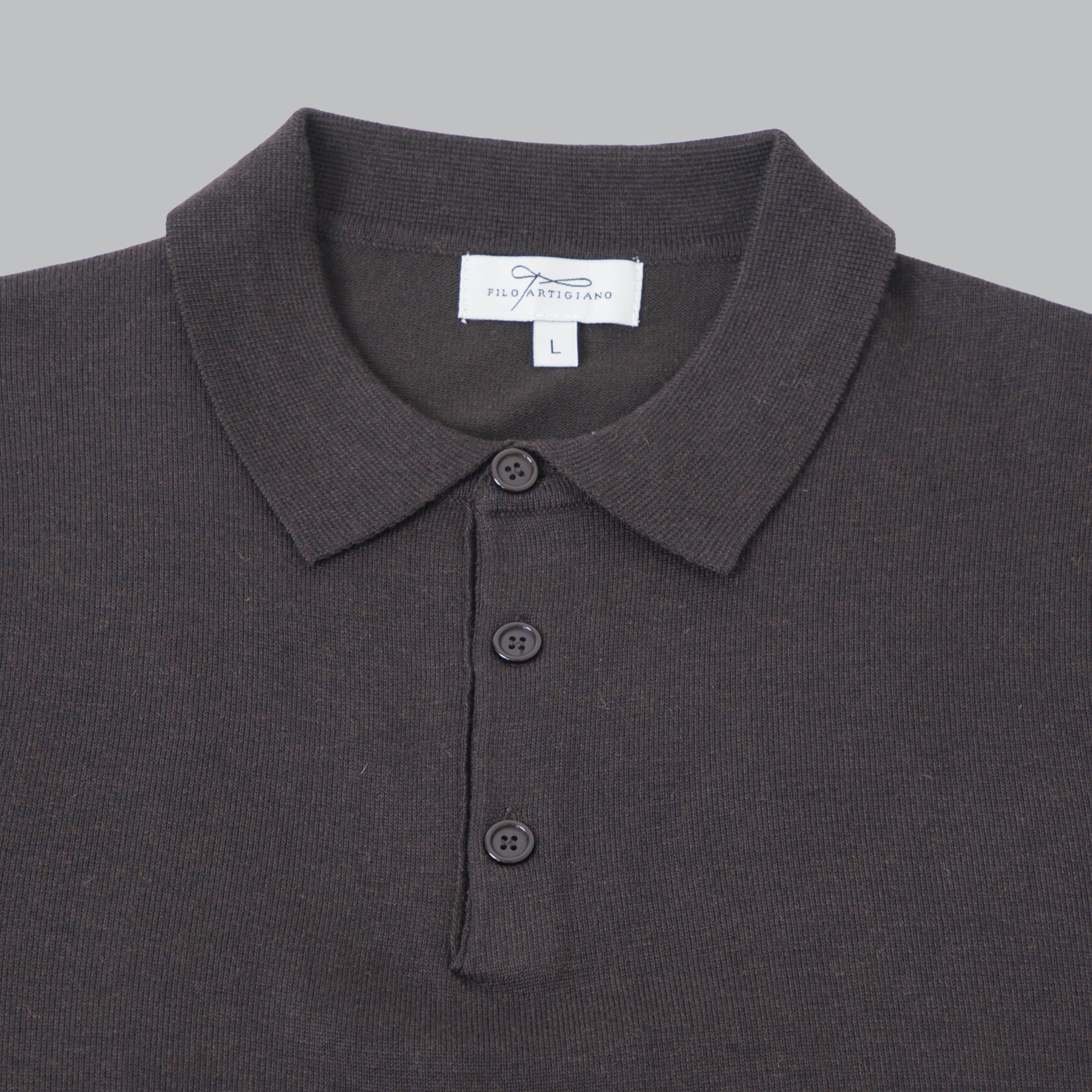 a wool blend polo shirt. Lapel collar with front opening. Sleeves