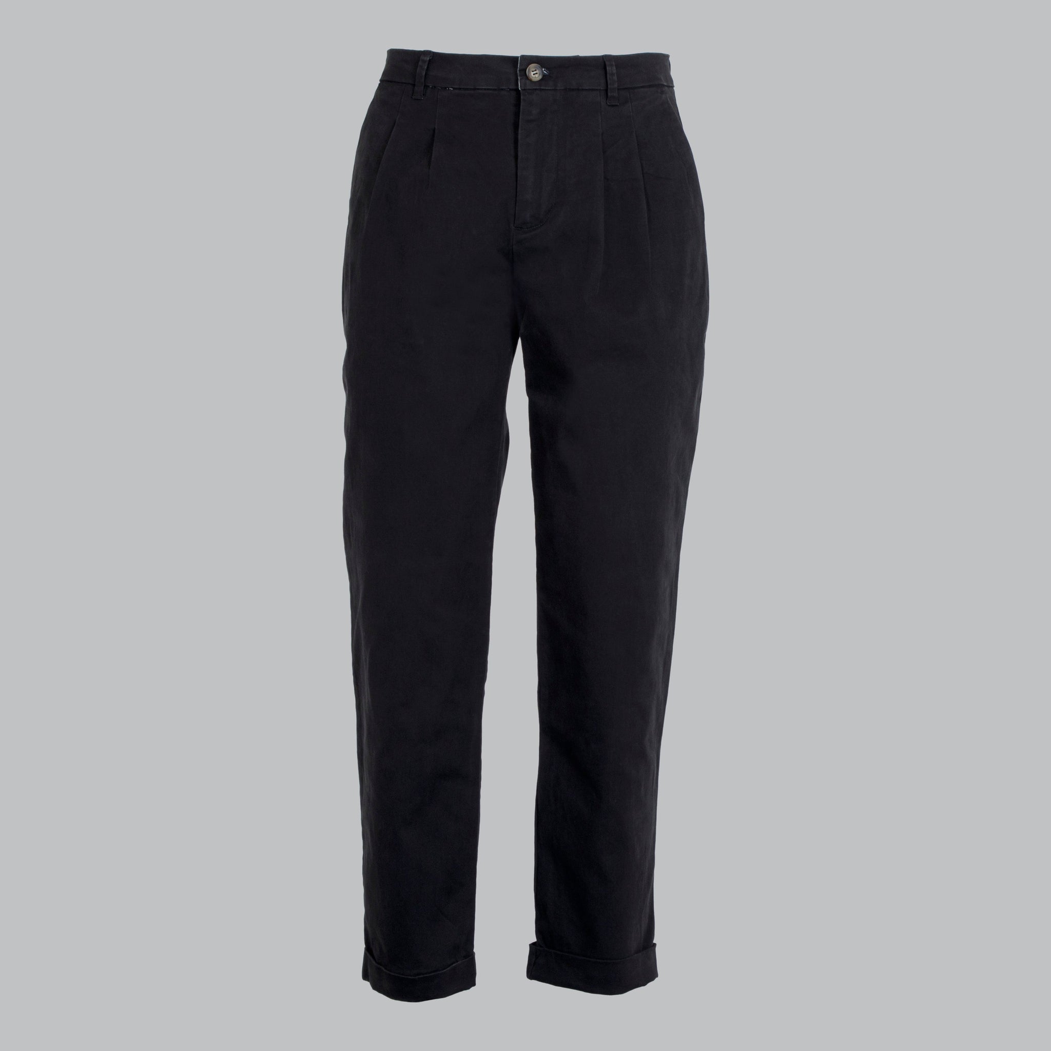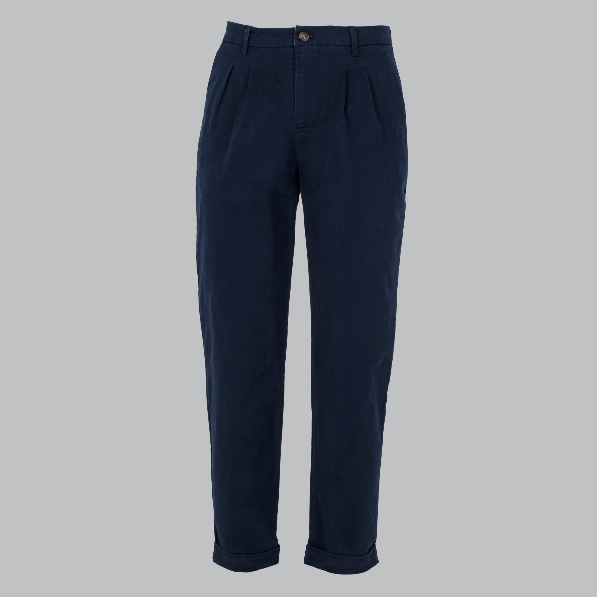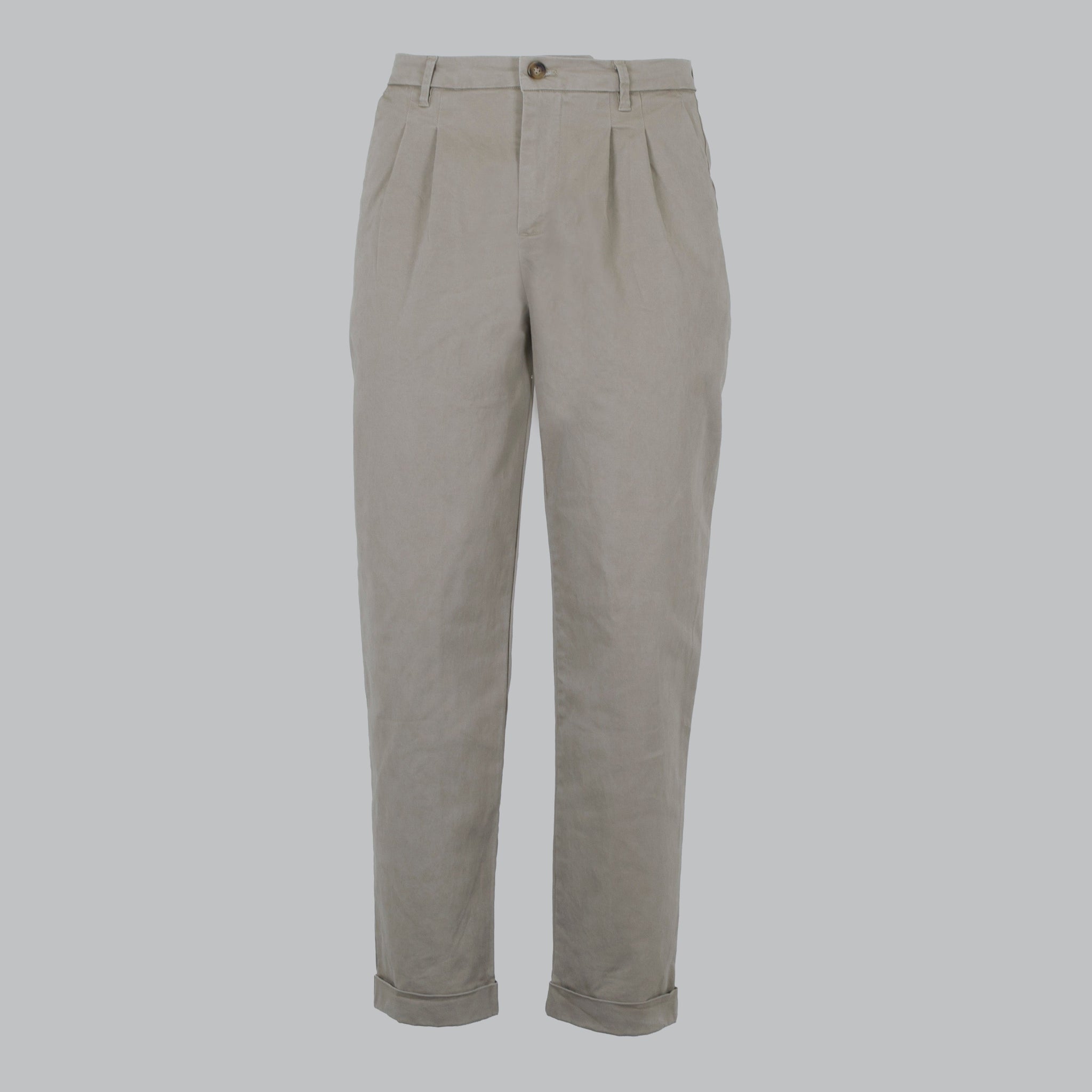 Cotton chino trousers. With front pleats. Pockets. flush sides for a comfortable yet fashionable fit. Slightly wider bottom ample.