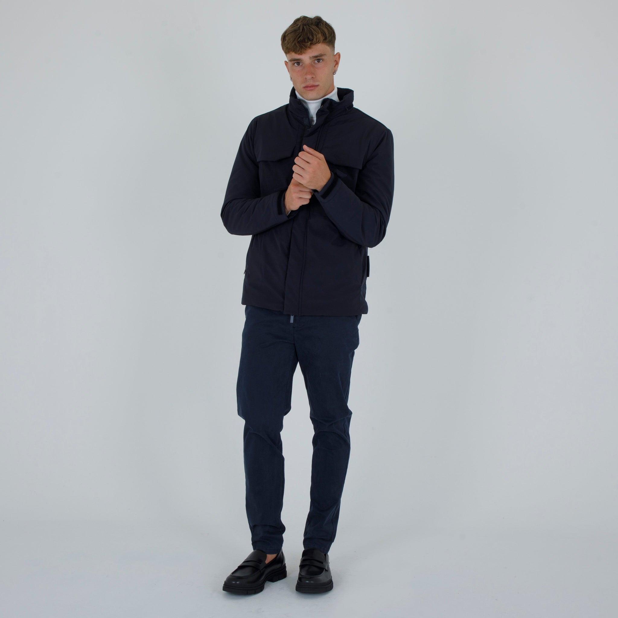 corto in tessuto tecnico. Maniche lunghe con polsino regolabile. Tasche a