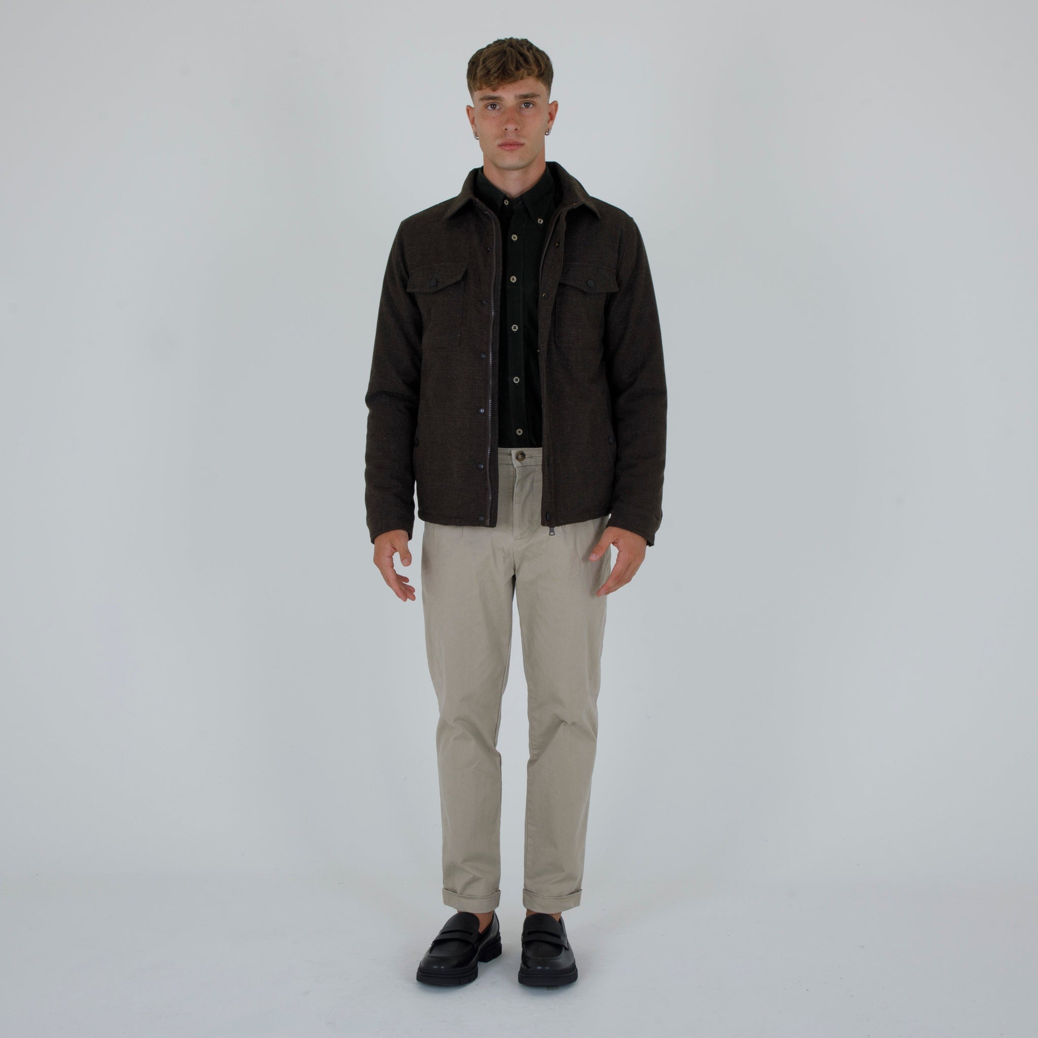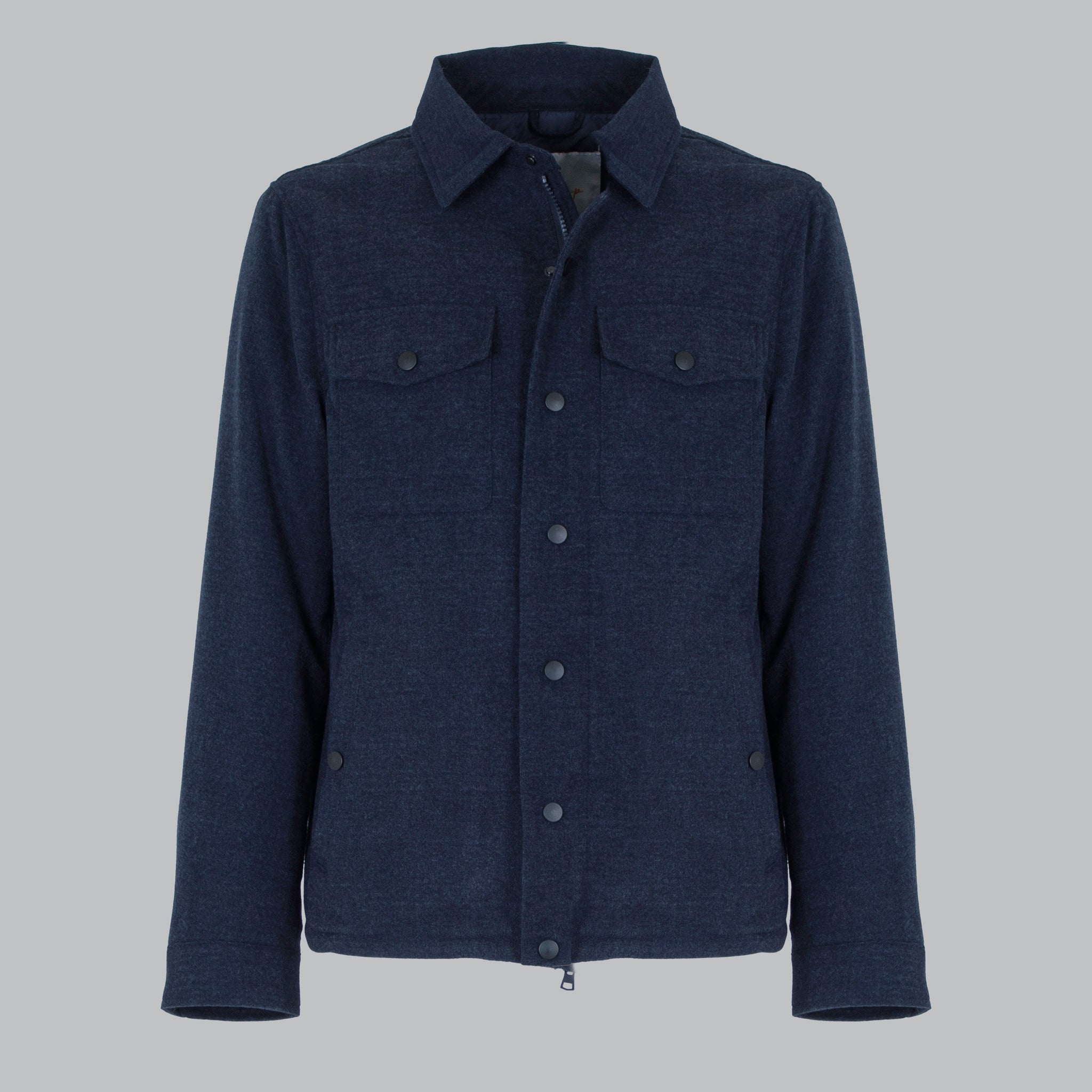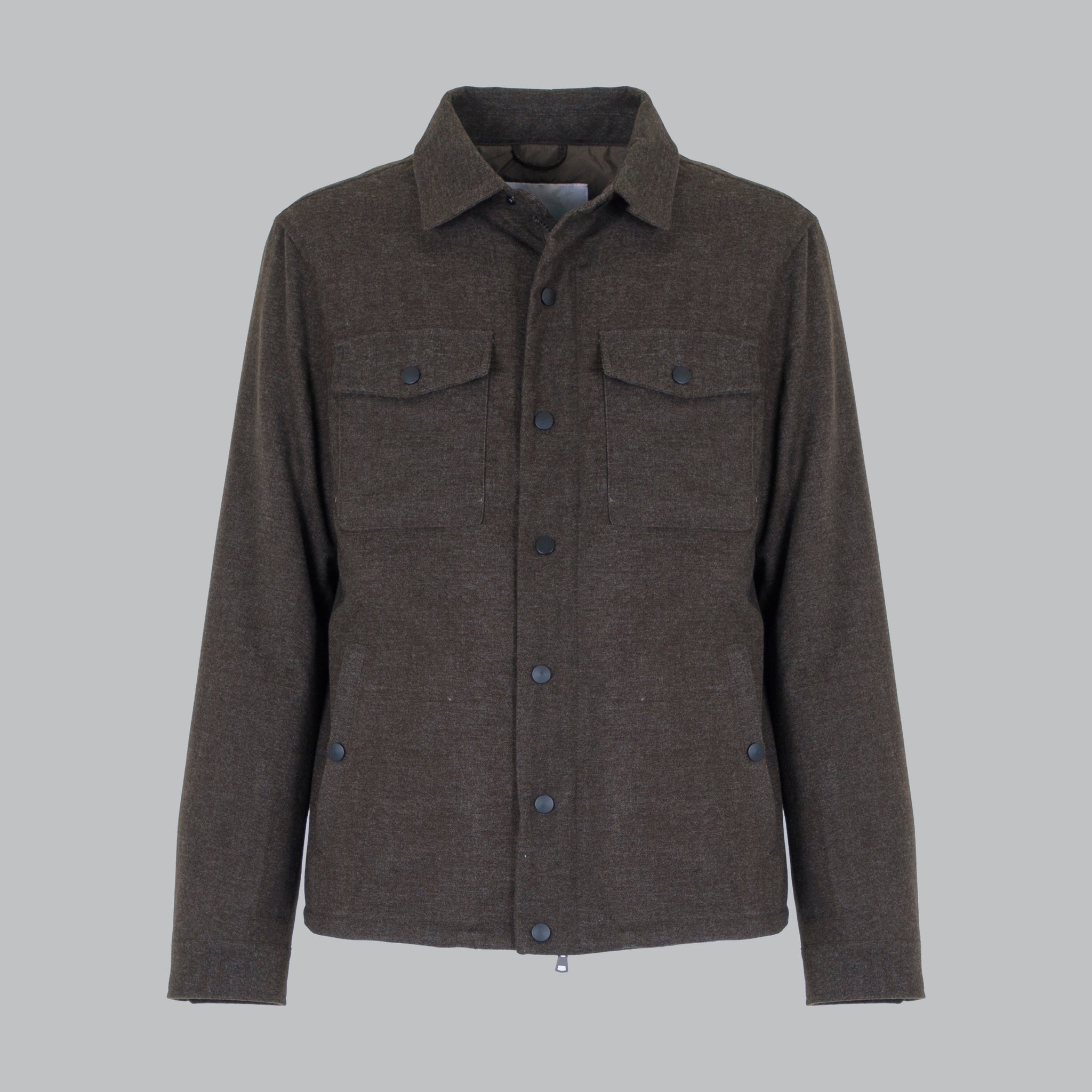 camicia con struttura in misto lana con tasconi anteriori. Abbottonatura con