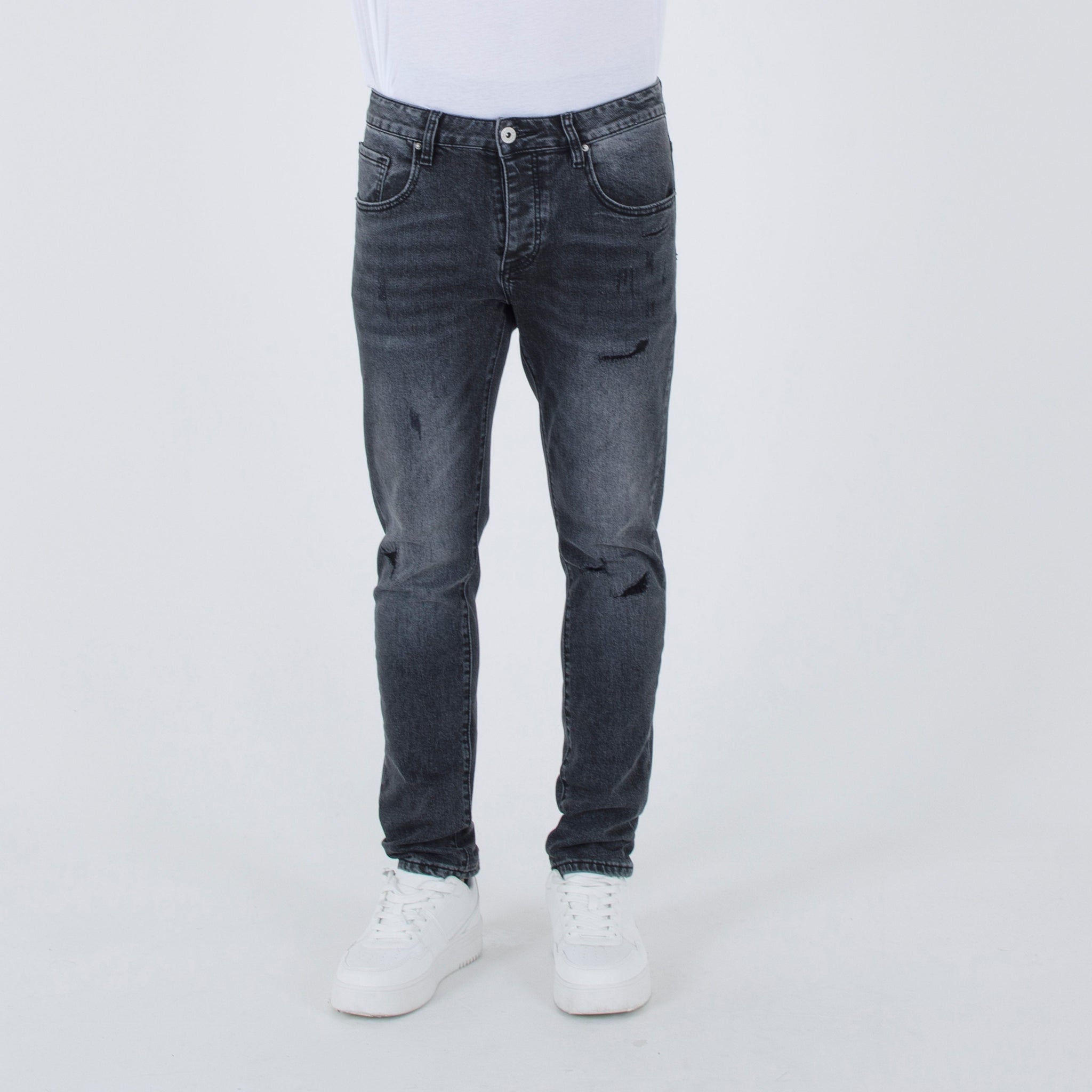 Jeans slim. Cinque tasche. Con lavaggio nero sabbiato